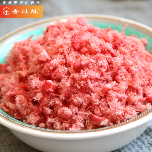 Finely shredded meat fibers with a fluffy texture, crispy and savory taste, visually appealing golden color. Primarily used as a topping for pastries, rice balls, sushi, xiaobei (mini buns), and bread. Also suitable as a filling for sushi and other pastries