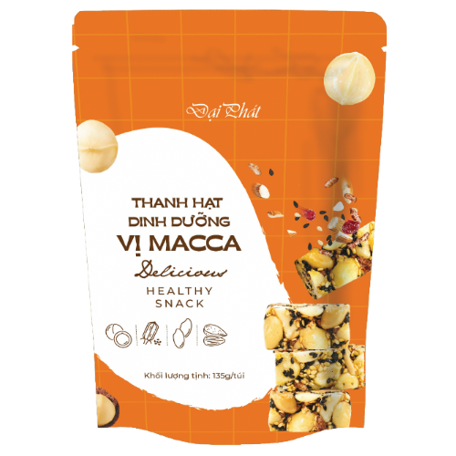 Product Information: Net weight: 135g/bag Ingredients: Macadamia nuts, almonds, oats, pumpkin seeds, honey, raisins, glucose syrup, sea salt. Storage: Keep in a cool, dry place away from direct sunlight. Shelf life: 12 months from the manufacturing date. Origin: Vietnam.