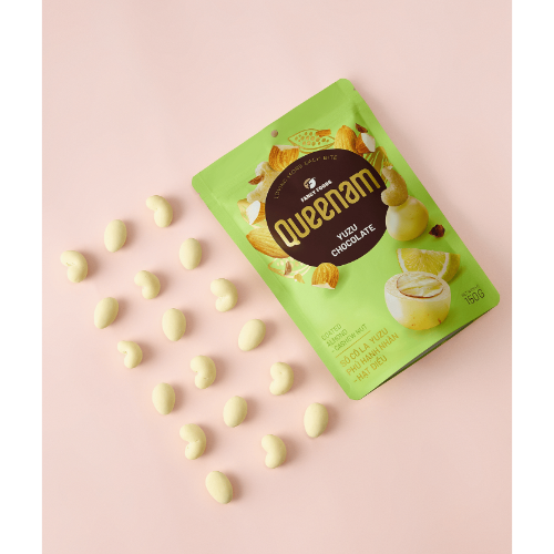 Origin: Vietnam Ingredients: Milk powder, cocoa butter, sugar, yuzu powder (3%) Nuts: Almonds, cashews Flavor profile: Refreshing citrusy tang of yuzu balanced with the rich crunch of nutritious nuts Packaging sizes: 150g and 75g zip bags Shelf life: 12 months Storage recommendations: 16°C – 22°C Usage: Ready to enjoy directly. Ideal for daily snacking. With its beautiful and meaningful design, this product also makes a perfect gift for special occasions such as birthdays, Valentine’s Day, Lunar New Year, Women’s Day (March 8), Vietnamese Women’s Day (October 20), and many other meaningful celebrations.
