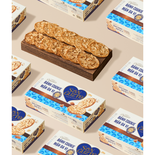 Details: The Premium Savory Cookies Collection brings together two ocean-inspired flavors: Fish Almond Cookie and Shrimp Almond Cookie. Each crunchy bite blends the savory sweetness of dried shrimp and dried fish with the rich nuttiness of almonds, creating a unique and captivating snacking experience. Net weight: 90g (2 packs x 45g) Packaging: Paper box (with 2 inner plastic packs) Includes 2 flavors: - Fish Almond Cookie (45g): A savory-sweet mix of dried fish, fish sauce, dill, and a hint of chili. - Shrimp Almond Cookie (45g): Bold shrimp flavor (3%) paired with almonds and a delicate touch of kaffir lime leaves. Usage instructions: Consume immediately after opening. Avoid prolonged exposure to air to maintain crispness. Storage: Store in a cool, dry place away from direct sunlight. Ideal temperature: 15–26°C. Allergen information: Contains eggs, almonds, milk, wheat. May contain traces of other nuts, crustaceans, or seafood. ⚠️ Warning: Do not consume if the product shows signs of spoilage or has expired. Shelf life: 12 months from the manufacturing date. Serving suggestions: Perfect as a premium gift, for afternoon tea, office teabreaks, or to enjoy with family and friends.