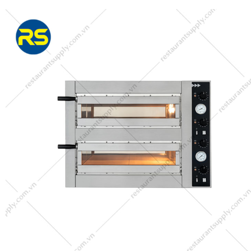 – Professional Baking Oven – Single or Double Deck – Available in single or double chamber versions, with internal dimensions suitable for standard 60×40 cm trays. – Maximum working temperature: 450°C. Model: TINY/2 PRO INOX Top heating element power: 1900 x 2 W Bottom heating element power: 1200 x 2 W Deck no.: 02 Capacity pizza: 02 + 02 (Ø300 mm) Working temperature: 50 ºC to 450 ºC Electric power: 62 kW Voltage: 230 – 400 V External dimensions: 965Wx625Dx680H (mm) Internal dimensions: 620Wx420Dx140H (mm) Manufacturer: PRISMAFOOD Made in: ITALY
