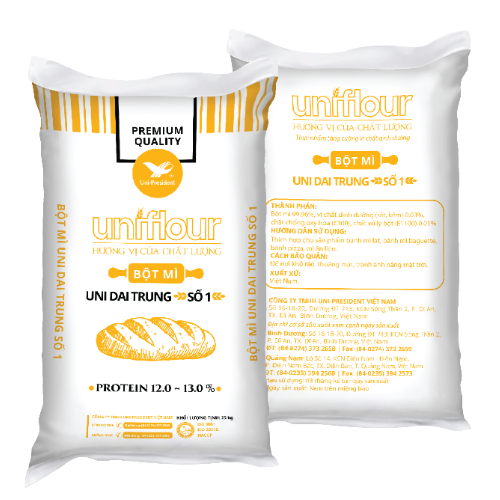 Medium Gluten No. 1 Uni Flour (≥12% protein) offers high elasticity and absorption, ideal for soft, elastic breads, pizzas, and noodles with golden crust and pleasant aroma