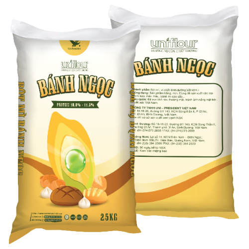 Banh Ngoc Flour has low ash, bright white color, fine texture, ideal for steamed cakes, bread, cookies, and batter—offering excellent rise, soft, smooth, and crispy results.